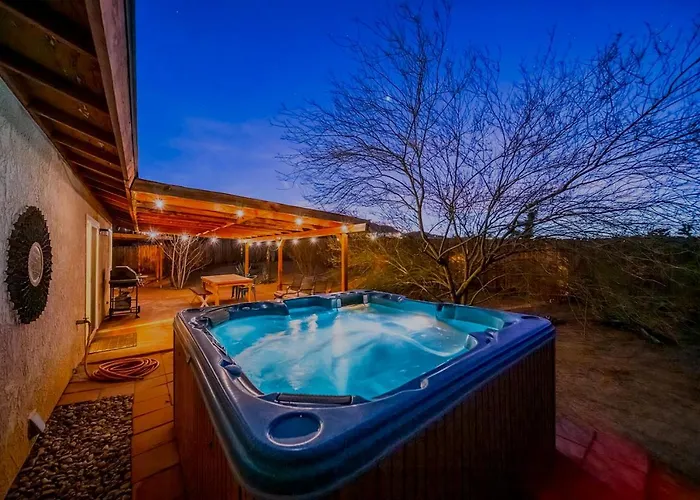 The 2-bedroom Cozy Desert Retreat With Amazing Views Only 4 Miles To Jtnp Joshua Tree villa is located approximately a 25-minute stroll from the Art Queen and offers guests to enjoy their evening on a patio with outdoor dining areas. Featuring mountain views, the accommodation invites guests to visit the Joshua Tree Health Foods|Joshua Tree Health Foods, located 2.4 km away.